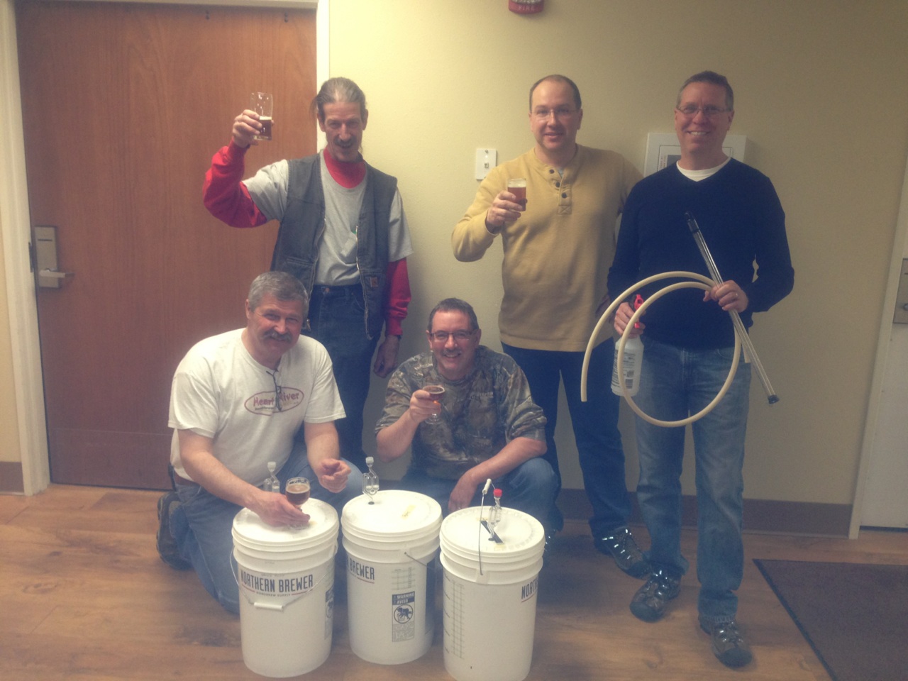 Glen, Alicia, Jerry, Jon and Lindsey watch kettles of boiling wort during the 2014 Hawk’s Point brew session on April 4th in the Hawk’s Point kitchen. The brew crew (back) Jerry, Ryan, Glen (front) Jon & Rocky.